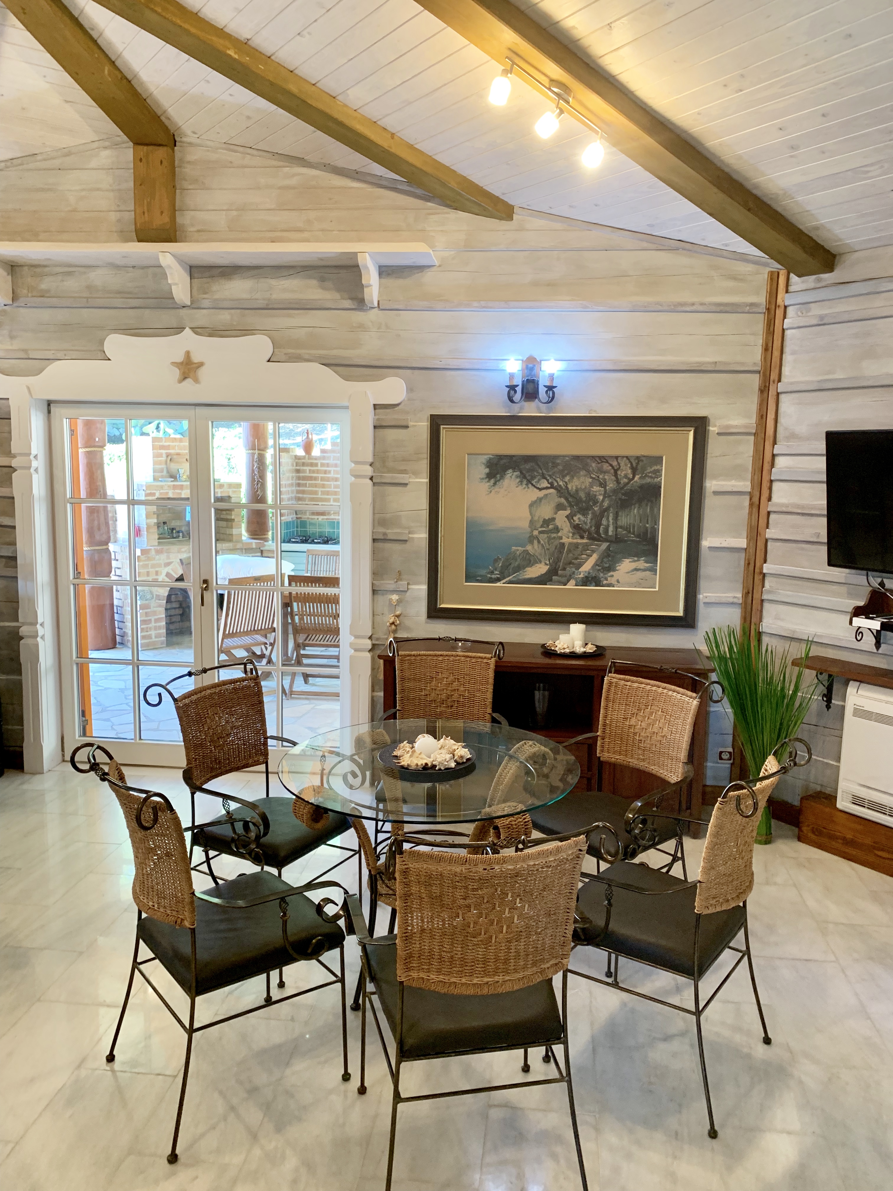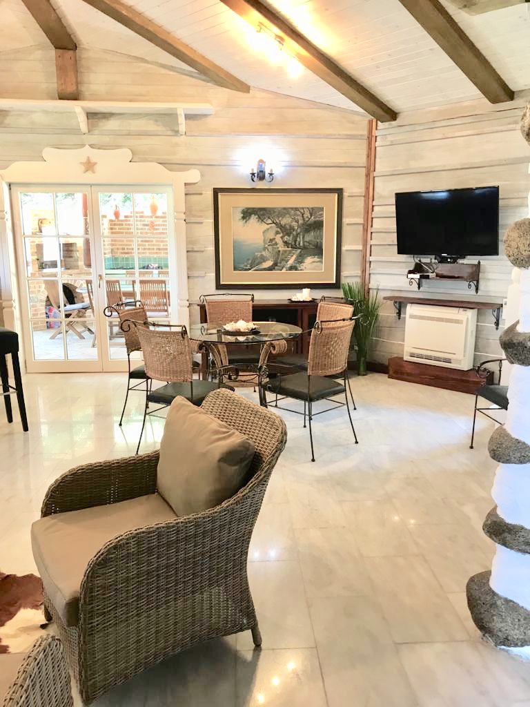 - dodatkowy aneks kuchenny na zewnątrz (płyta gazowa, lodówka) wraz z jadalnią