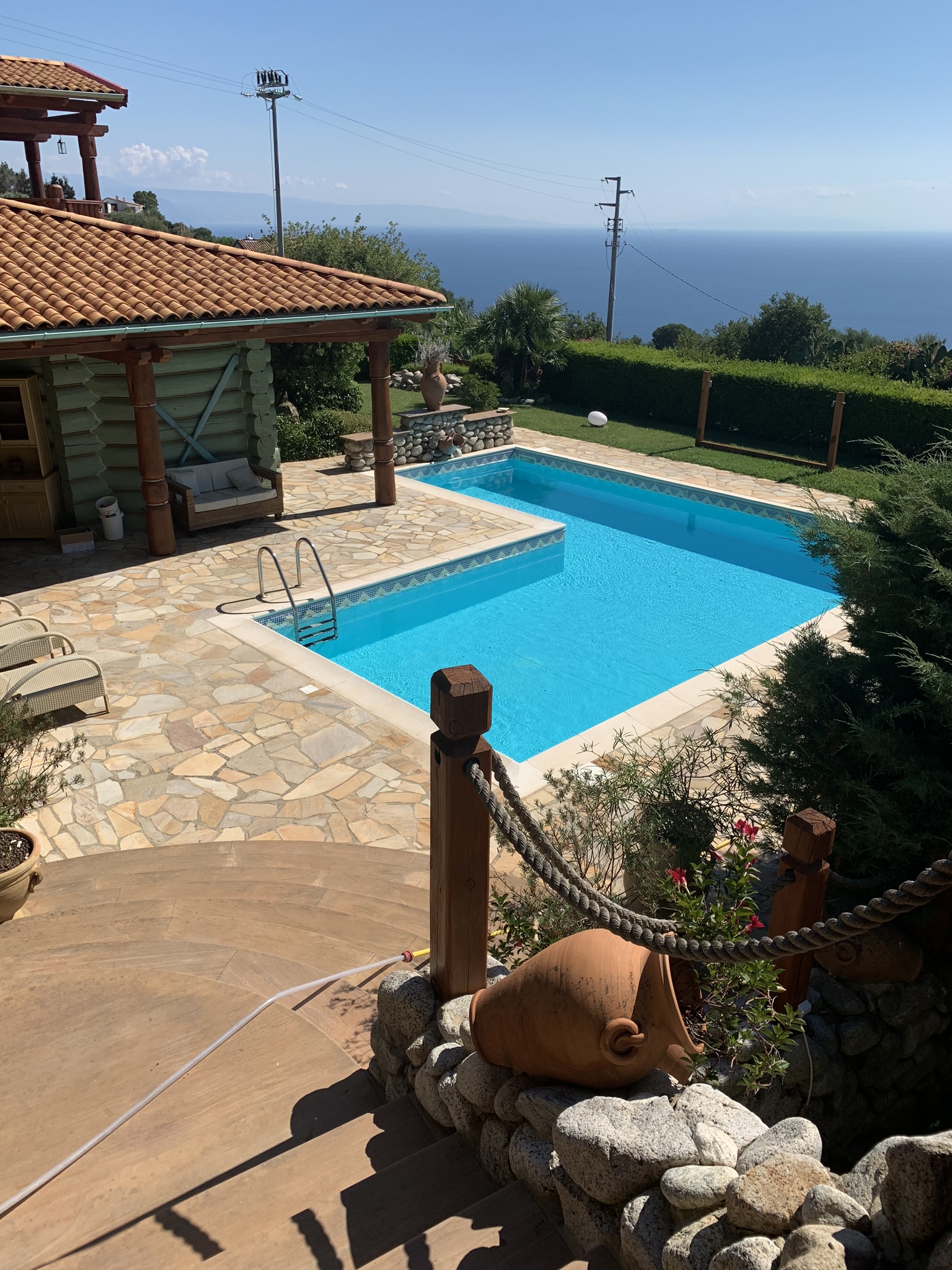 Za bujnym ogrodem domu, pełnym lokalnej roślinności, rozciąga się wspaniały widok na Morze Tyrreńskie, Sycylię, półwysep Capo di Vaticano i Wyspy Liparyjskie z czynnym wulkanem na Stromboli, stanowiący przepiękne tło dla relaksu i zabawy.